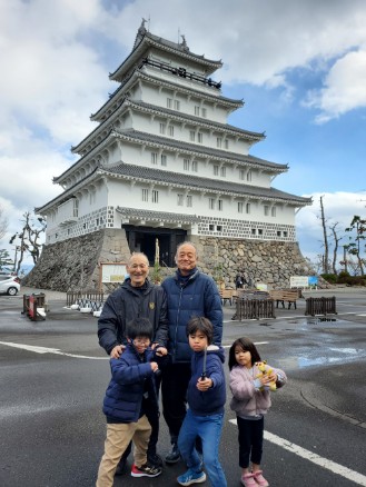 | ’26年01月11日(日) | 今日は出雲から来た足立氏のバスケ研修最終日。練習後島原城の目の前にある具雑煮の店(姫松屋)へ行き昼飯を食べた。食後は島原城をバックに記念撮影。撮影中家族で観光に来ていたらしいこどもたちが3人紛れ込んできたので一緒に撮った。どこの県から来たのか名前はなんというのか親はどこにいるのかも知らない。なかなか愉快な1日だった。 |