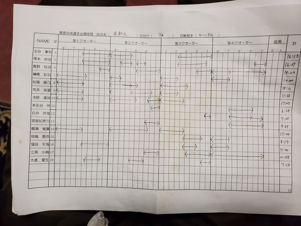 | ’26年01月17日(土) | 初日だからエントリーした選手は全員出してやろうと思って采配を振るったが、そうするとどこかに歪みが出てくる。教育的配慮にもとづく高校部活のしかも新人戦なので致し方ない。ただ、前年前十字靱帯を切って1年を棒に振った淺野と中学生時代から腰痛を引きずって高校でのバスケ活動を諦めかけていた鵜瀬を公式戦のコートに立たせてやることができたのは、みんなの喜びとして分かち合いたい。 |