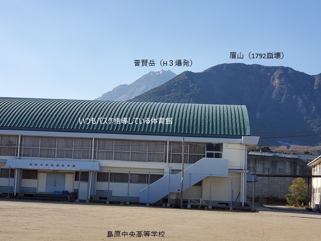 | ’26年01月14日(水) | 今日の外気温は昨日より寒かった。私が凍死しそうだったので昨日と同じ2セットで練習を打ち切った。写真は校庭から見た普賢岳遠くにうっすら雪を被っている。手前が1792年5月21日に普賢岳の火山性地震で山体崩壊してできた眉山である。この時は対岸の熊本まで津波が押し寄せた。手前は我々が日常練習している体育館。明日は気温が6℃上がると言われているから少し安心だ。 |